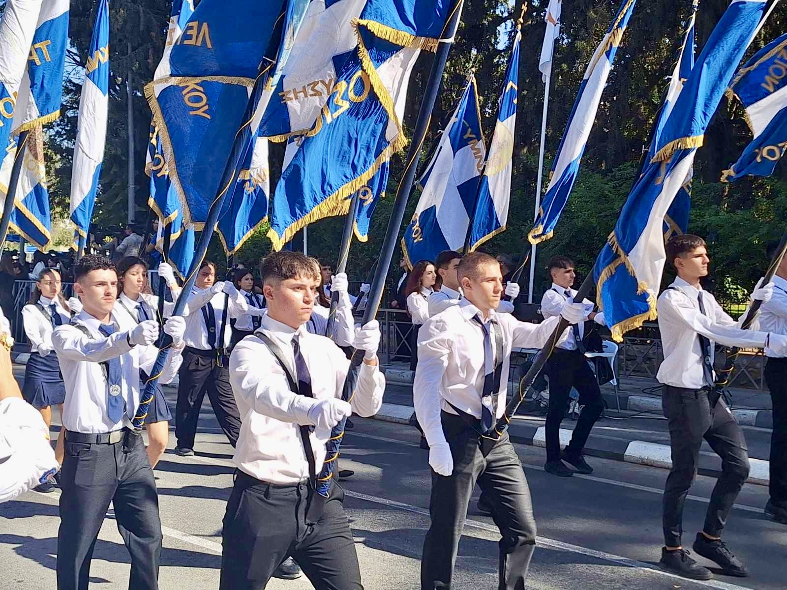 Οι μαθητές και μαθήτριές μας, παρελαύνοντας με υπερηφάνεια, πειθαρχία και άψογο σχηματισμό, τίμησαν το Λάβαρο του Σχολείου, τις Σημαίες και όλους όσοι αγωνίστηκαν για τα ιδανικά της Ελευθερίας, της Δημοκρατίας και της Ειρήνης.