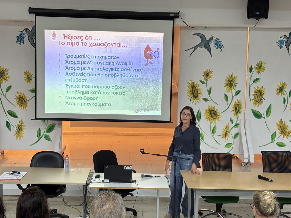 Με πρωτοβουλία της Επιτροπής Αιμοδοσίας του Σχολείου σε συνεργασία με το Κέντρο Αίματος, πραγματοποιήθηκε την Παρασκευή, 31 Οκτωβρίου 2025, τη 2η περίοδο, ενημερωτική διάλεξη για τους μαθητές και τις μαθήτριες της Γ’ τάξης, από την κ. Στέλλα Πέτρου, με θέμα τη σημασία της Αιμοδοσίας.