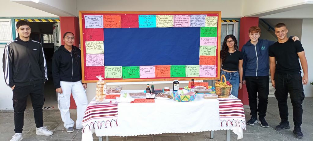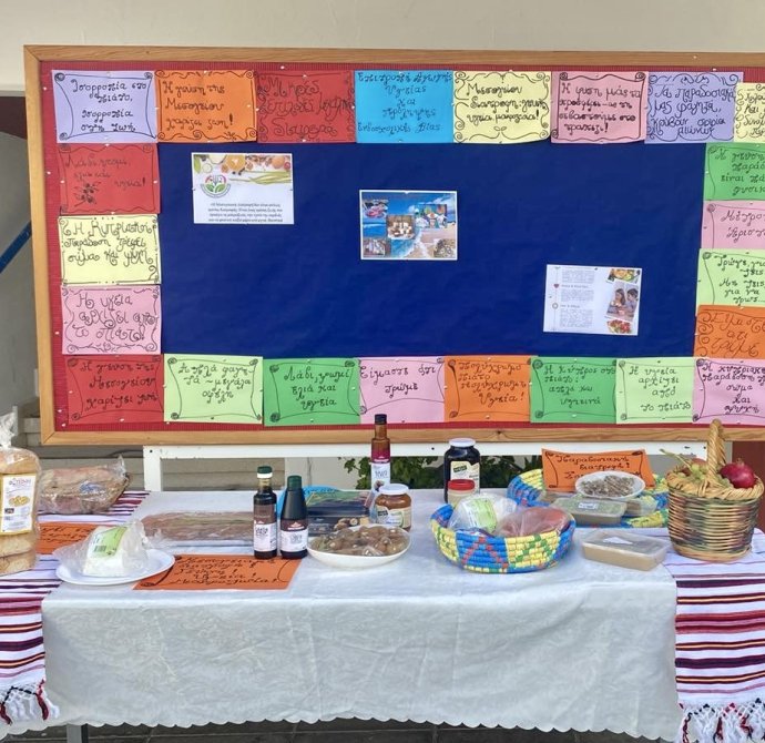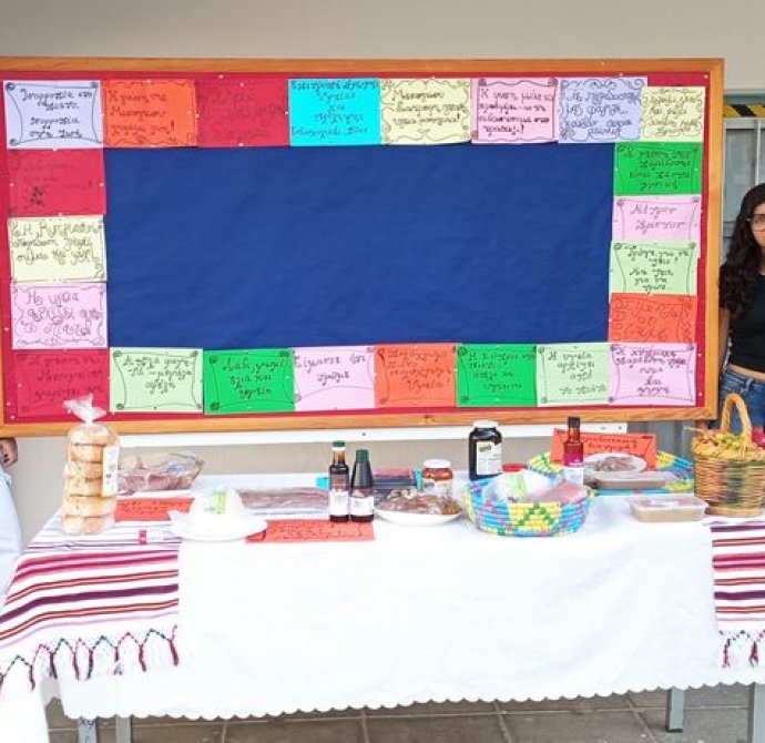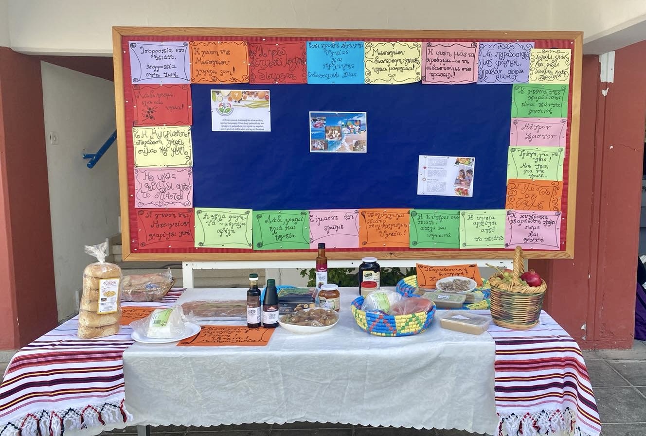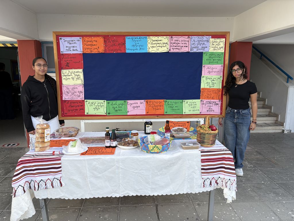 Επιστροφή στη Μεσογειακή και Παραδοσιακή Διατροφή! Αυτό το μήνυμα θέλησε να δώσει η Επιτροπή Αγωγής Υγείας και Πρόληψης Ενδοσχολικής Βίας του Σχολείου μας, με το στήσιμο μικρού Περιπτέρου στην Κεντρική Αυλή του Σχολείου, την Τετάρτη, 12 Νοεμβρίου 2025. Μια πινακίδα με ρήσεις, βγαλμένες από τη λαϊκή θυμοσοφία και ένας πάγκος με παραδοσιακά κυπριακά προϊόντα: Σκηνικό λιτό, αλλά πλούσιο σε μηνύματα!