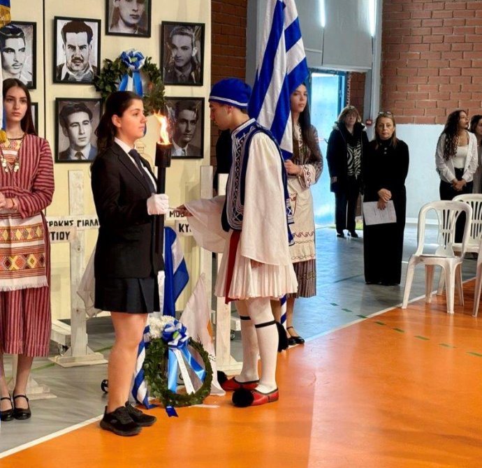 Μια φλόγα μνήμης και τιμής άναψε στο Σχολείο μας την Τρίτη, 31 Μαρτίου 2026, στο πλαίσιο του εορτασμού της Εθνικής Επετείου της 1ης Απριλίου 1955, φωτίζοντας τις σελίδες ενός αγώνα, που χαράχτηκε βαθιά στην ιστορία του τόπου μας.