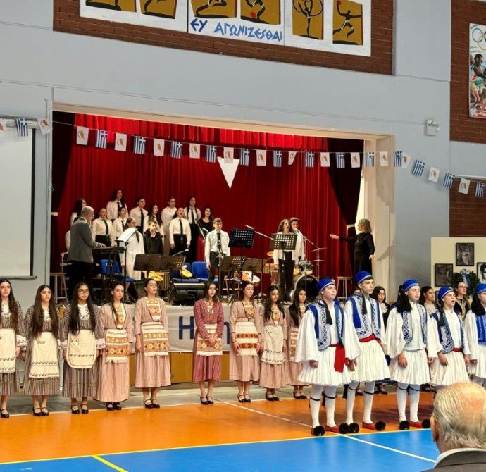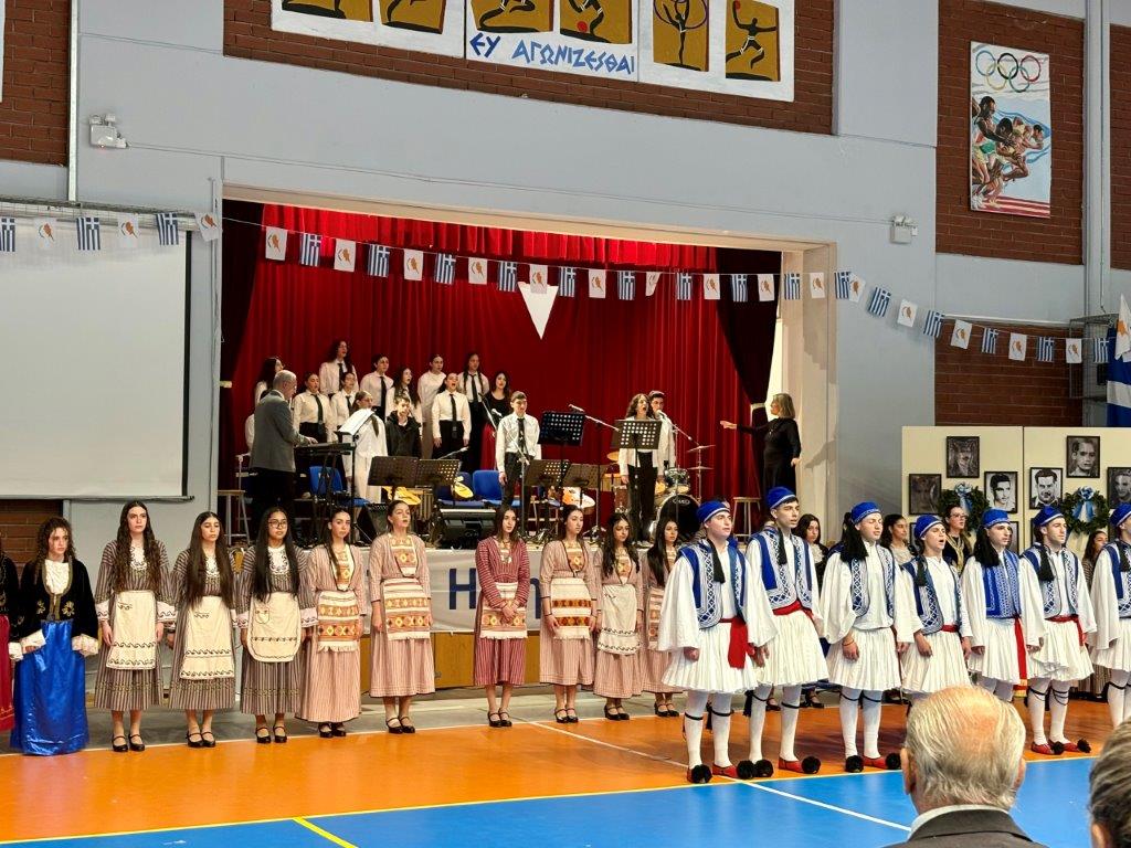Το καλλιτεχνικό πρόγραμμα, που παρουσίασαν οι μαθητές και οι μαθήτριες, ανέδειξε στιγμές και βιώματα του Απελευθερωτικού Αγώνα, προσεγγίζοντάς τον, όχι μόνο ως ιστορικό γεγονός, αλλά ως εμπειρία ανθρώπινη και διαχρονική. Μέσα από θεατρικά δρώμενα, αφηγήσεις και μουσική, ζωντάνεψαν μορφές και ιδανικά, που συνεχίζουν να εμπνέουν μέχρι σήμερα. Πριν από την έναρξη της εκδήλωσης, ομάδα μαθητών και μαθητριών εκπροσώπησε το Σχολείο στην Τελετή Κατάθεσης Στεφάνων και Μεταφοράς της Φλόγας από τα Φυλακισμένα Μνήματα, μια συμβολική πράξη που γεφυρώνει το παρελθόν με το παρόν και διατηρεί άσβεστη τη μνήμη των αγωνιστών.