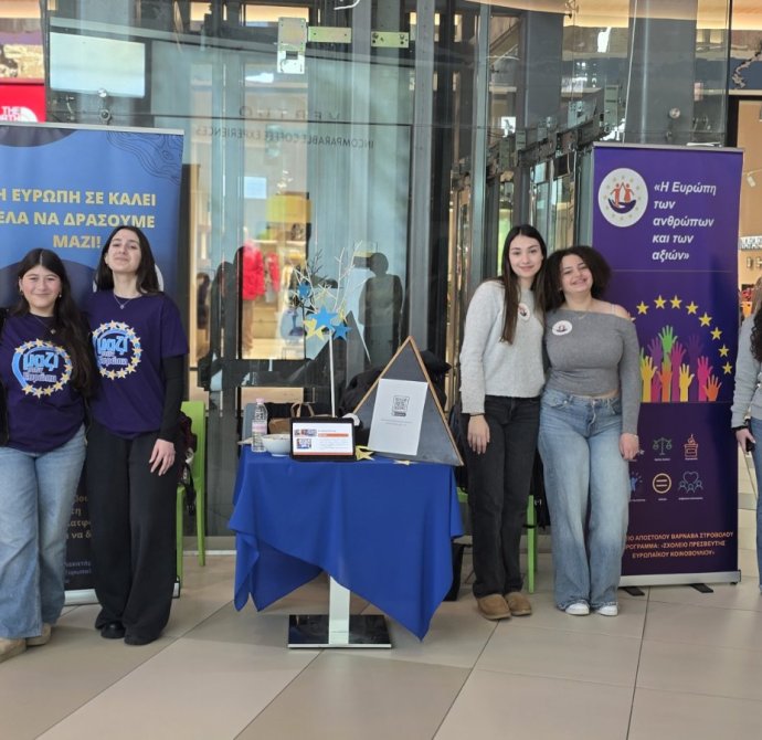 Οι δόκιμοι πρεσβευτές/ πρέσβειρες του Προγράμματος «Σχολείο Πρεσβευτής του Ευρωπαϊκού Κοινοβουλίου» του Σχολείου μας, ενώνοντας τις δυνάμεις τους με την αντίστοιχη ομάδα του Λυκείου Αγίου Γεωργίου Λακατάμειας, διοργάνωσαν ενημερωτική δράση, την Κυριακή, 15 Φεβρουαρίου 2026, στο NicosiaMall, όπου κάλεσαν τον κόσμο να συμμετάσχει ενεργά, συμπληρώνοντας ερωτηματολόγιο για θέματα, που αφορούν στην Ευρωπαϊκή Ένωση και την Κυπριακή Προεδρία του Συμβουλίου της Ευρώπης. Ένα μεγάλο μπράβο στα παιδιά και των δύο Σχολείων για την πρωτοβουλία, τον ενθουσιασμό, την ευγένεια και το πνεύμα συνεργασίας, που επέδειξαν κατά τη διάρκεια της δράσης!
