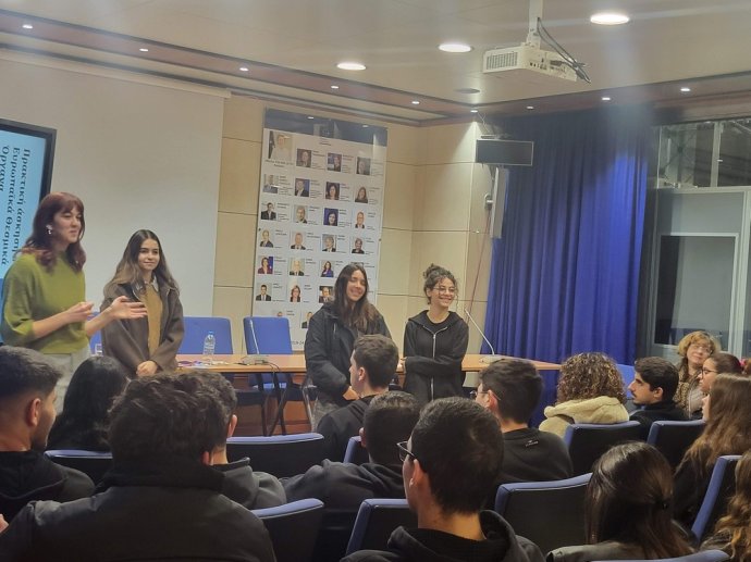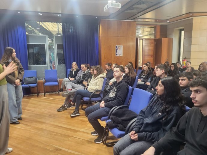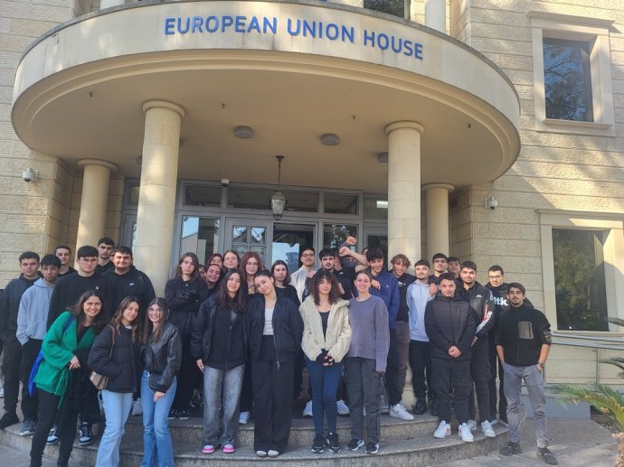 Την Παρασκευή, 10 Ιανουαρίου 2025, ομάδα τελειόφοιτων μαθητών και μαθητριών του Σχολείου μας επισκέφθηκε το «Σπίτι της Ευρωπαϊκής Ένωσης». Συγκεκριμένα, τα τμήματα Γ11, Γ31 και Γ32, συνοδευόμενα από τις Φιλολόγους του Σχολείου μας κ.Βασιλική Παπαδάκη, Β.Δ. Α΄, κ. Έλλη Δάλα, Β.Δ. και κ. Ευτυχία Αναστασίου, είχαν την ευκαιρία να ενημερωθούν, να συζητήσουν και να αναταλλάξουν απόψεις με λειτουργούς του Ευρωπαϊκού Γραφείου Κύπρου, σχετικά με θέματα όπως η λειτουργία των ευρωπαϊκών θεσμών, ο ρόλος και η λειτουργία του Ευρωπαϊκού Κοινοβουλίου, η Κυπριακή Προεδρία του Συμβουλίου της Ευρωπαϊκής Ένωσης κατά το πρώτο εξάμηνο του 2026, οι προοπτικές κατάρτισης και απασχόλησης, τα δικαιώματα των καταναλωτών, ο ρόλος και η προσφορά της Ε.Ε. στη βελτίωση της ζωής των Ευρωπαίων πολιτών, οι ευκαιρίες σπουδών και εργοδότησης σε άλλα κράτη μέλη της Ε.Ε., ο ρόλος της Ε.Ε. στον κόσμο, οι δράσεις της Ε.Ε. για τη νεολαία κ.ά.