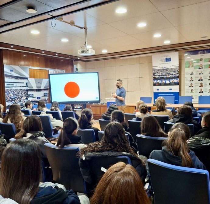 Οι δόκιμοι/δόκιμες πρεσβευτές/πρέσβειρές του Προγράμματος «Σχολείο Πρεσβευτής του Ευρωπαϊκού Κοινοβουλίου» και οι μαθήτριες του τμήματος Γ11 επισκέφθηκαν το «Σπίτι της Ευρώπης» την Πέμπτη, 22 Ιανουαρίου 2026. Οι μαθητές και οι μαθήτριές μας, μέσα από μια διαδραστική παρουσίαση, είχαν την ευκαιρία να ενημερωθούν και να συζητήσουν για τα οφέλη της Ευρωπαϊκής Ένωσης, τους θεσμούς της κι άλλα σημαντικά θέματα που την αφορούν. Μια εμπειρία γνώσης και ενεργού συμμετοχής!