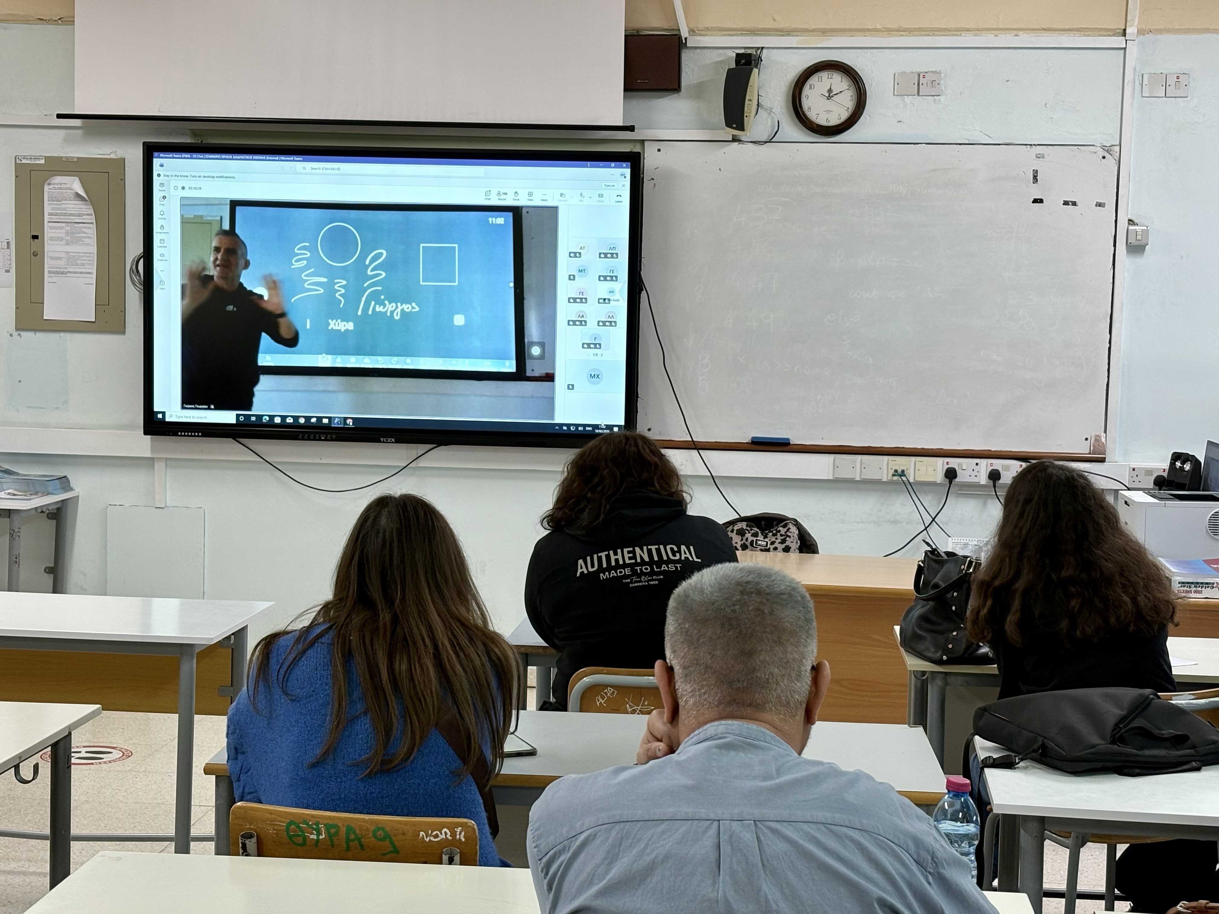 Ακολούθησε διαδικτυακή παρουσίαση από τον κ. Μιχάλη Τερέπεση, της Μονάδας Τ.Π.Ε. του Υ.Π.Α.Ν., με θέμα «Βασική Χρήση Διαδραστικών Οθονών». Οι συμμετέχοντες/-ουσες ενημερώθηκαν για πρακτικές εφαρμογές και τρόπους αξιοποίησης του εξοπλισμού στις σχολικές αίθουσες, με στόχο τη δημιουργία ενός πιο διαδραστικού και ελκυστικού μαθησιακού περιβάλλοντος.