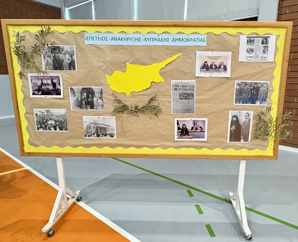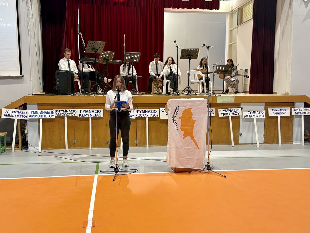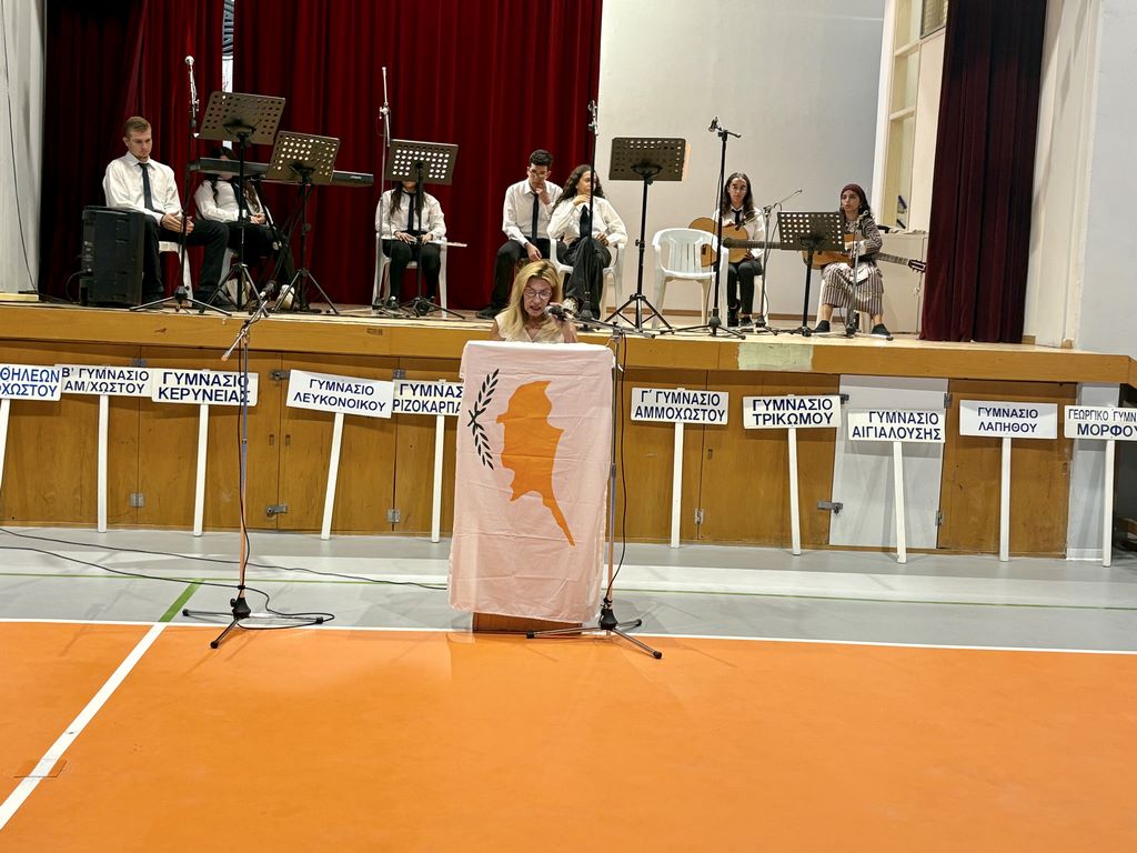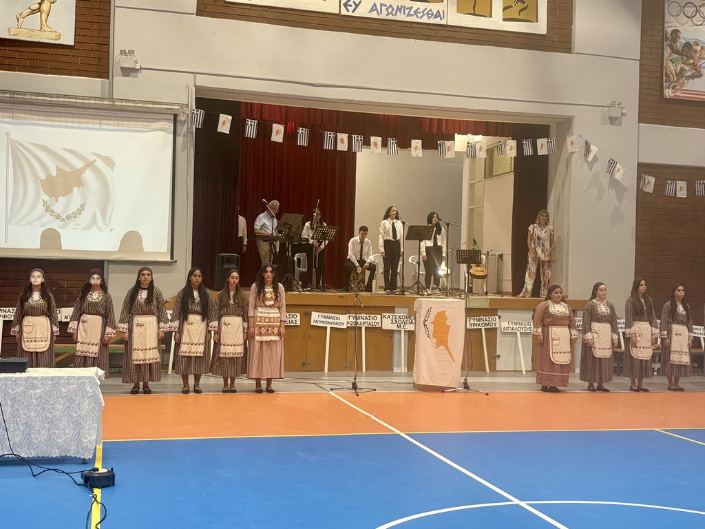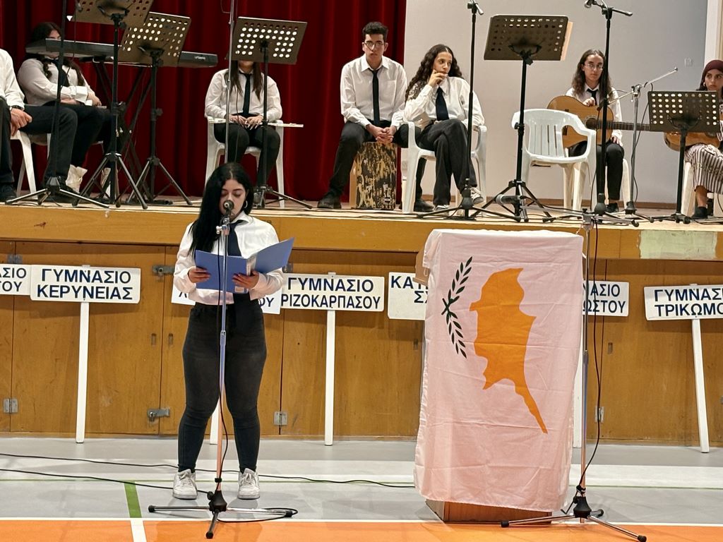 Με τους συγκινητικούς αυτούς στίχους του Κώστα Μόντη, γεμάτους φως, αλμύρα και μνήμη, ξεκίνησε ο φετινός εορτασμός της Επετείου Ανακήρυξης της Κυπριακής Δημοκρατίας στο Σχολείο μας. Η εκδήλωση πραγματοποιήθηκε την Τρίτη, 30 Σεπτεμβρίου 2025, την 4η περίοδο, στην Αίθουσα Πολλαπλών Χρήσεων. Μέσα από ποιητικούς στοχασμούς, ιστορικά κείμενα, αφηγήσεις, μουσικά δρώμενα και κυπριακούς παραδοσιακούς χορούς, οι μαθητές και οι μαθήτριες τίμησαν την ιστορική ημέρα της 1ης Οκτωβρίου 1960.