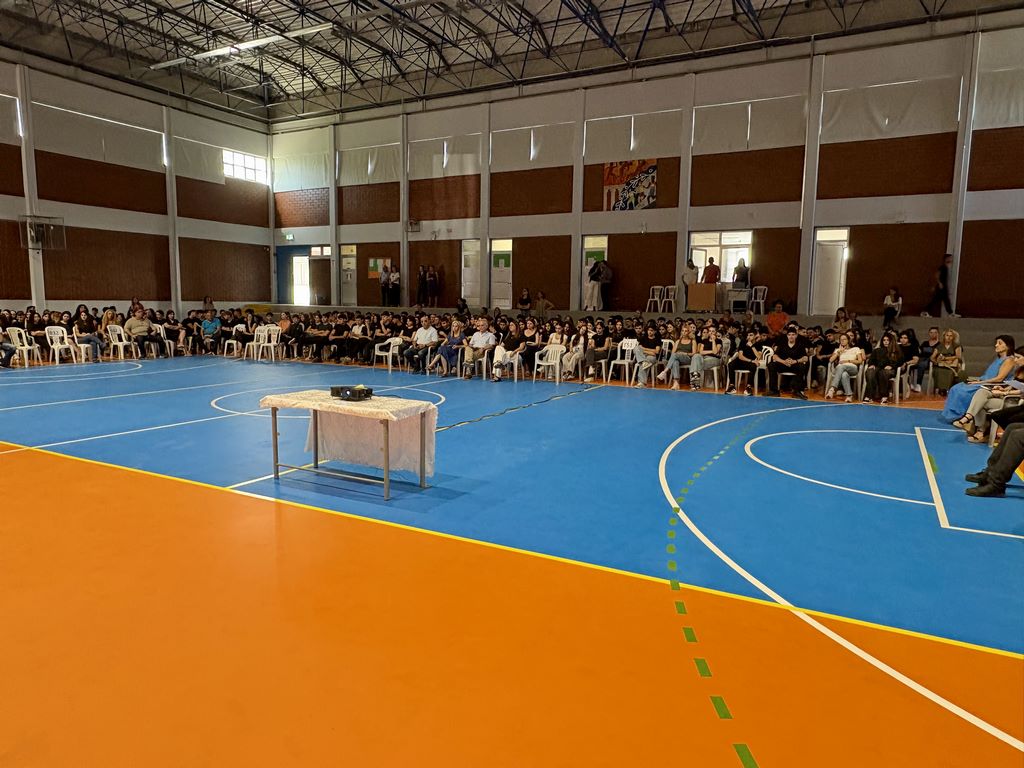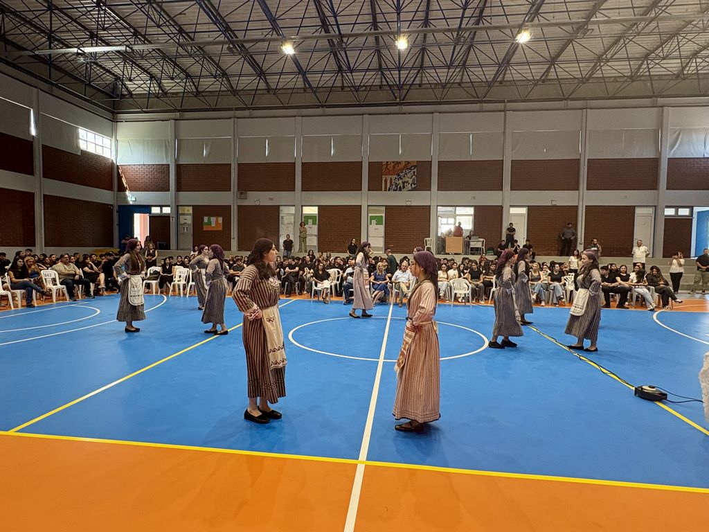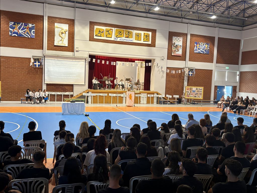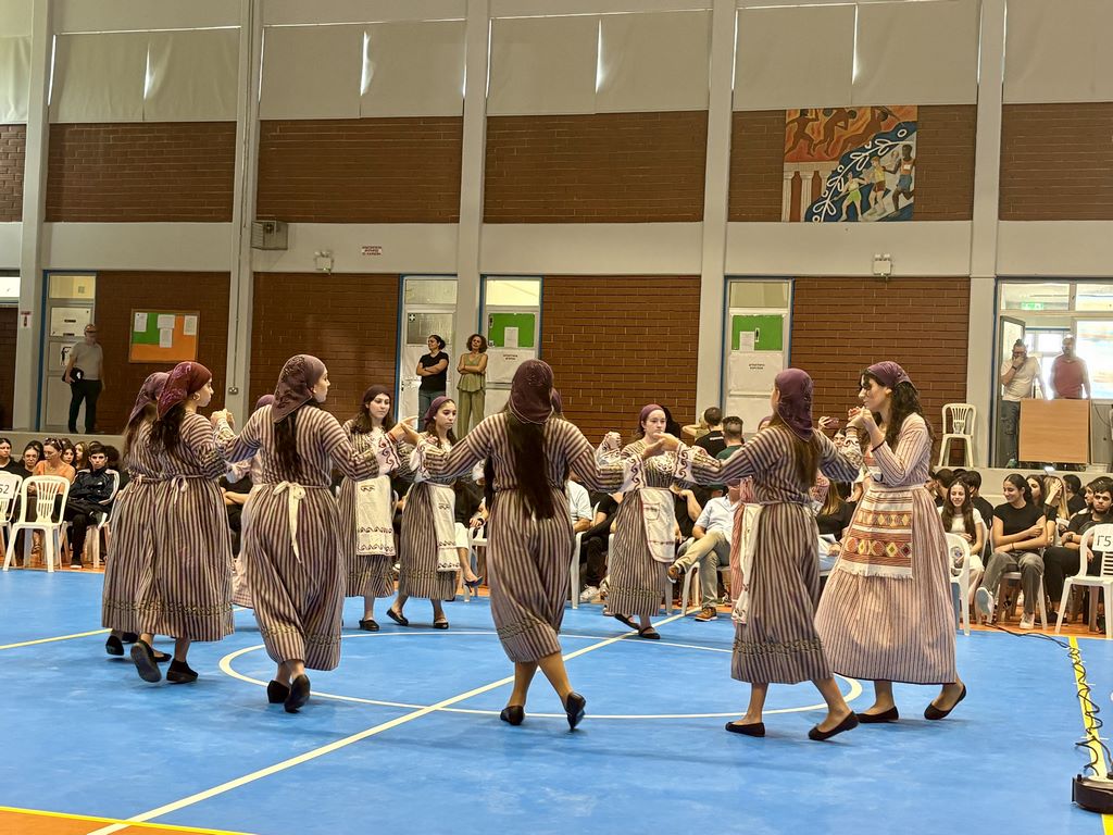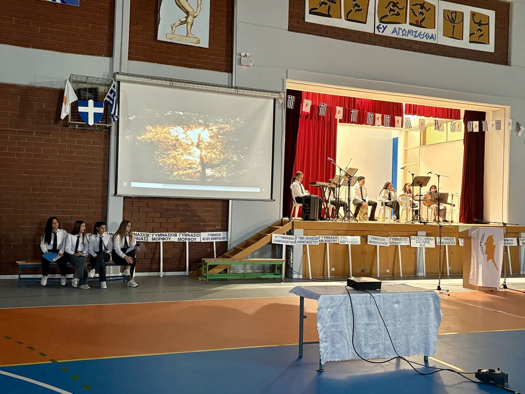 Με τους συγκινητικούς αυτούς στίχους του Κώστα Μόντη, γεμάτους φως, αλμύρα και μνήμη, ξεκίνησε ο φετινός εορτασμός της Επετείου Ανακήρυξης της Κυπριακής Δημοκρατίας στο Σχολείο μας. Η εκδήλωση πραγματοποιήθηκε την Τρίτη, 30 Σεπτεμβρίου 2025, την 4η περίοδο, στην Αίθουσα Πολλαπλών Χρήσεων. Μέσα από ποιητικούς στοχασμούς, ιστορικά κείμενα, αφηγήσεις, μουσικά δρώμενα και κυπριακούς παραδοσιακούς χορούς, οι μαθητές και οι μαθήτριες τίμησαν την ιστορική ημέρα της 1ης Οκτωβρίου 1960.