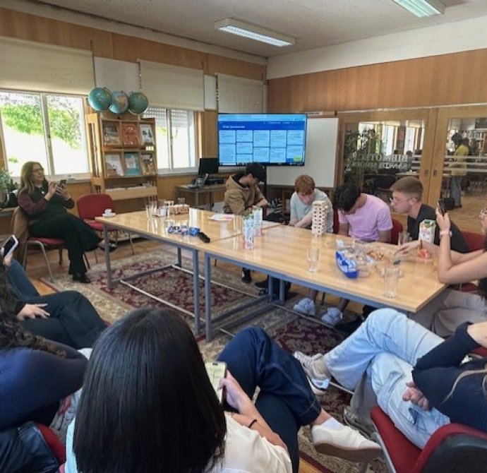Μετά την επίσημη υποδοχή και παρουσίαση του Σχολείου μας, ακολούθησε μια σειρά από εργαστήρια. Το πρώτο είχε ως θέμα τη συμπερίληψη, μέσα από το οποίο, οι μαθητές και οι μαθήτριες διερεύνησαν τα εμπόδια στη συμμετοχή όλων στη σχολική ζωή και πρότειναν πρακτικούς τρόπους δημιουργίας ενός συμπεριληπτικού σχολικού περιβάλλοντος. Στο πλαίσιο των δραστηριοτήτων, πραγματοποιήθηκε, σε συνεργασία με τον Οργανισμό Landscape Lab, εργαστήριο για την περιβαλλοντική βιωσιμότητα, με έμφαση στις δράσεις του Γκιμαράες ως Πράσινης Πρωτεύουσας 2026. Οι συμμετέχοντες/-ουσες γνώρισαν καλές πρακτικές βιώσιμης ανάπτυξης και προβληματίστηκαν σχετικά με την εφαρμογή παρόμοιων πρωτοβουλιών στις δικές τους κοινότητες. Πραγματοποιήθηκε, επίσης, εργαστήριο με τίτλο «Earth Guardians: Inspiring Tomorrow’s Citizens», όπου οι μαθητές και οι μαθήτριες συμμετείχαν σε συνεργατικές δράσεις, όπως η δραστηριότητα Jenga και η καταγραφή συμπερασμάτων μέσω της ψηφιακής πλατφόρμας Padlet. Μέσα από αυτές τις μεθόδους, ανέπτυξαν δεξιότητες συνεργασίας και επίλυσης προβλημάτων, ενώ, παράλληλα, ενίσχυσαν την περιβαλλοντική τους ευαισθητοποίηση και την ενεργό συμμετοχή.