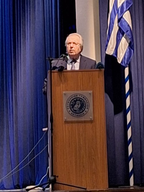 Την Παρασκευή, 7 Φεβρουαρίου το 2025, με αφορμή την Παγκόσμια Ημέρα Ελληνικής Γλώσσας είχαμε την ευκαιρία να παρακολουθήσουμε μια ενδιαφέρουσα διάλεξη, για τη μητρική μας Γλώσσα, από τον Έλληνα Καθηγητή Γλωσσολογίας, κ. Γεώργιο Μπαμπινώτη. Ο καθηγητής αναφέρθηκε στην ανεκτίμητη αξία της ελληνικής γλώσσας, όχι μόνο ως μέσο επικοινωνίας αλλά και ως τρόπο σκέψης, που διαμορφώνει τη νοητική διαδικασία και προσδίδει ροή στον λόγο. Επικαλούμενος τον Ιταλό επιστήμονα Γαλιλαίο, υπογράμμισε την πεποίθησή του ότι η ελληνική γλώσσα αποτελεί τη μεγαλύτερη ανακάλυψη στην ιστορία του ανθρώπινου πολιτισμού. Ταυτόχρονα, αναλύοντας την παγκόσμια επιρροή της, επισήμανε τη διαρκή κληρονομιά της, καθώς πολλές γλώσσες έχουν υιοθετήσει ελληνικές λέξεις και έννοιες. Ειδικότερα, αναφέρθηκε στους Τρεις Ιεράρχες, που κατάφεραν να συνδυάσουν την ελληνική σοφία με τη χριστιανική πίστη. Αποκορύφωμα της ομιλίας του, ήταν η ιδιαίτερη αναφορά του στην Κύπρο, επισημαίνοντας τον θρίαμβο του νησιού να διατηρήσει ανέπαφη την πολιτισμική του
