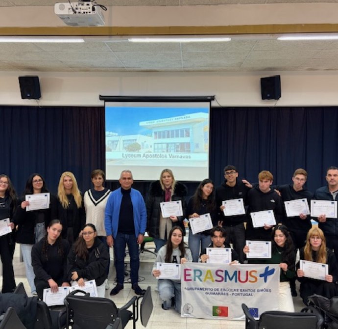 Το Λύκειο Αποστόλου Βαρνάβα Στροβόλου είχε την ιδιαίτερη χαρά και τιμή να φιλοξενήσει από την 1η μέχρι τις 6 Φεβρουαρίου 2026, μαθητές/μαθήτριες και εκπαιδευτικούς από την πόλη Guimarães, στο πλαίσιο Ευρωπαϊκού Προγράμματος Erasmus+ με τίτλο «BridgingBorders, Active Citizenship, Environmental Education and Digital Innovation». Η κινητικότητα αυτή αποτέλεσε μια ουσιαστική εμπειρία εκπαιδευτικής και πολιτισμικής ανταλλαγής, ενισχύοντας τη συνεργασία μεταξύ των δύο σχολείων και προάγοντας έμπρακτα τις αξίες της Ευρωπαϊκής Ένωσης, όπως τη δημοκρατία, τον σεβασμό και τον διαπολιτισμικό διάλογο.