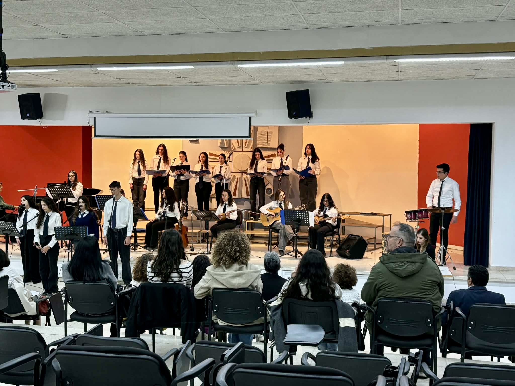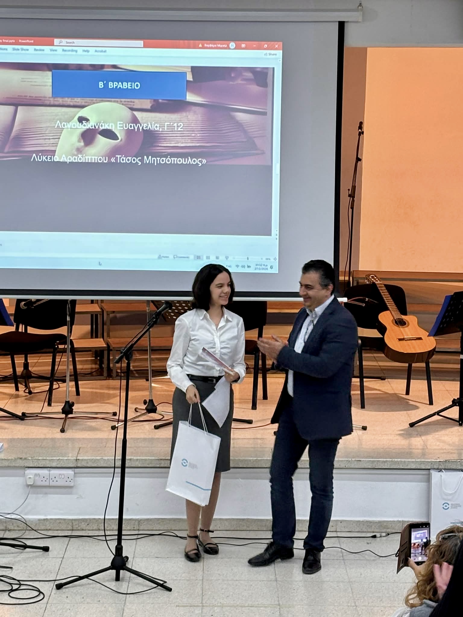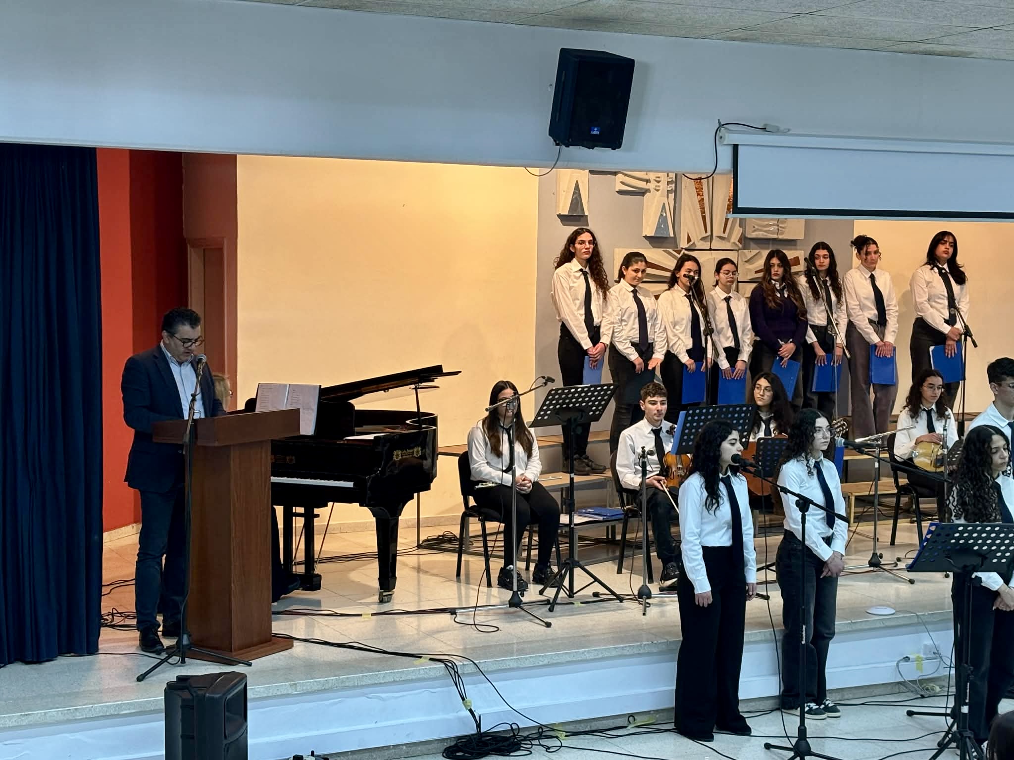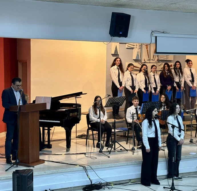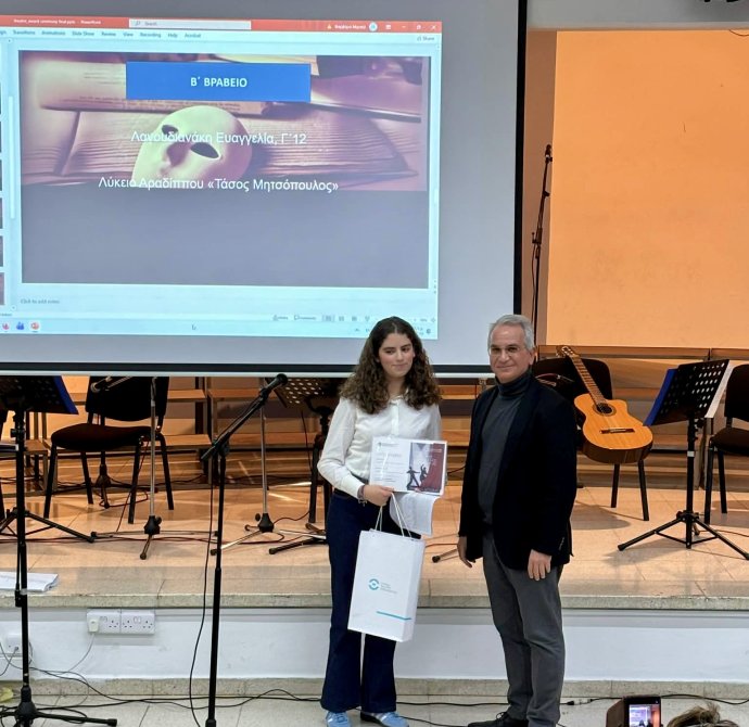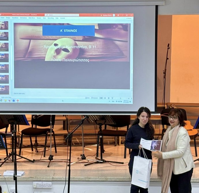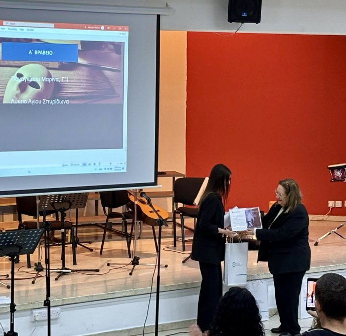 Την Παρασκευή, 27 Φεβρουαρίου 2026 πραγματοποιήθηκε στο Σχολείο μας η Τελετή Βράβευσης του Πρώτου Παγκύπριου Διαγωνισμού Θεατρολογίας, ο οποίος διοργανώθηκε με πρωτοβουλία της Διεύθυνσης Μέσης Εκπαίδευσης, σε συνεργασία με την Ομάδα Αναλυτικού Προγράμματος της Θεατρολογίας. Την Τελετή πλαισίωσε Μουσικό Σύνολο του Σχολείου μας, με τη συνοδεία πιάνου από την κ. Ιωάννα Σατραζάμη, Καθηγήτρια Μουσικής. Το μουσικό πρόγραμμα συνέβαλε στη δημιουργία μιας ιδιαίτερα όμορφης και καλλιτεχνικής ατμόσφαιρας, προσδίδοντας ξεχωριστό τόνο στην εκδήλωση.